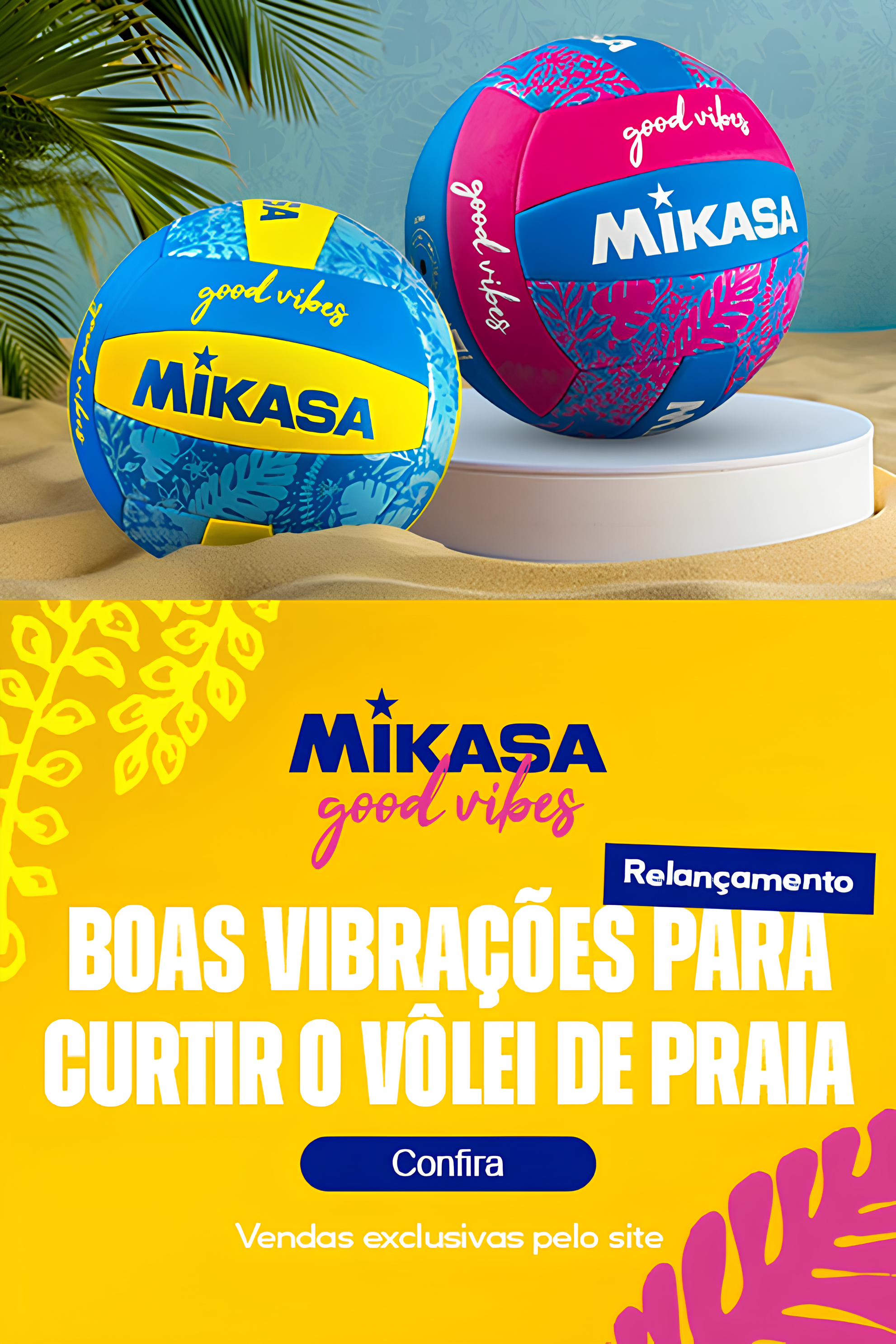 Bola de Vôlei de Praia Good Vibes Amarelo e Azul Mikasa